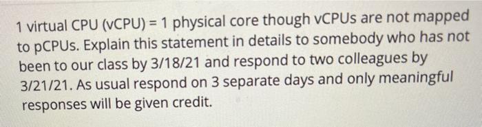 Solved 1 Virtual Cpu Vcpu 1 Physical Core Though Vcpus Chegg Com