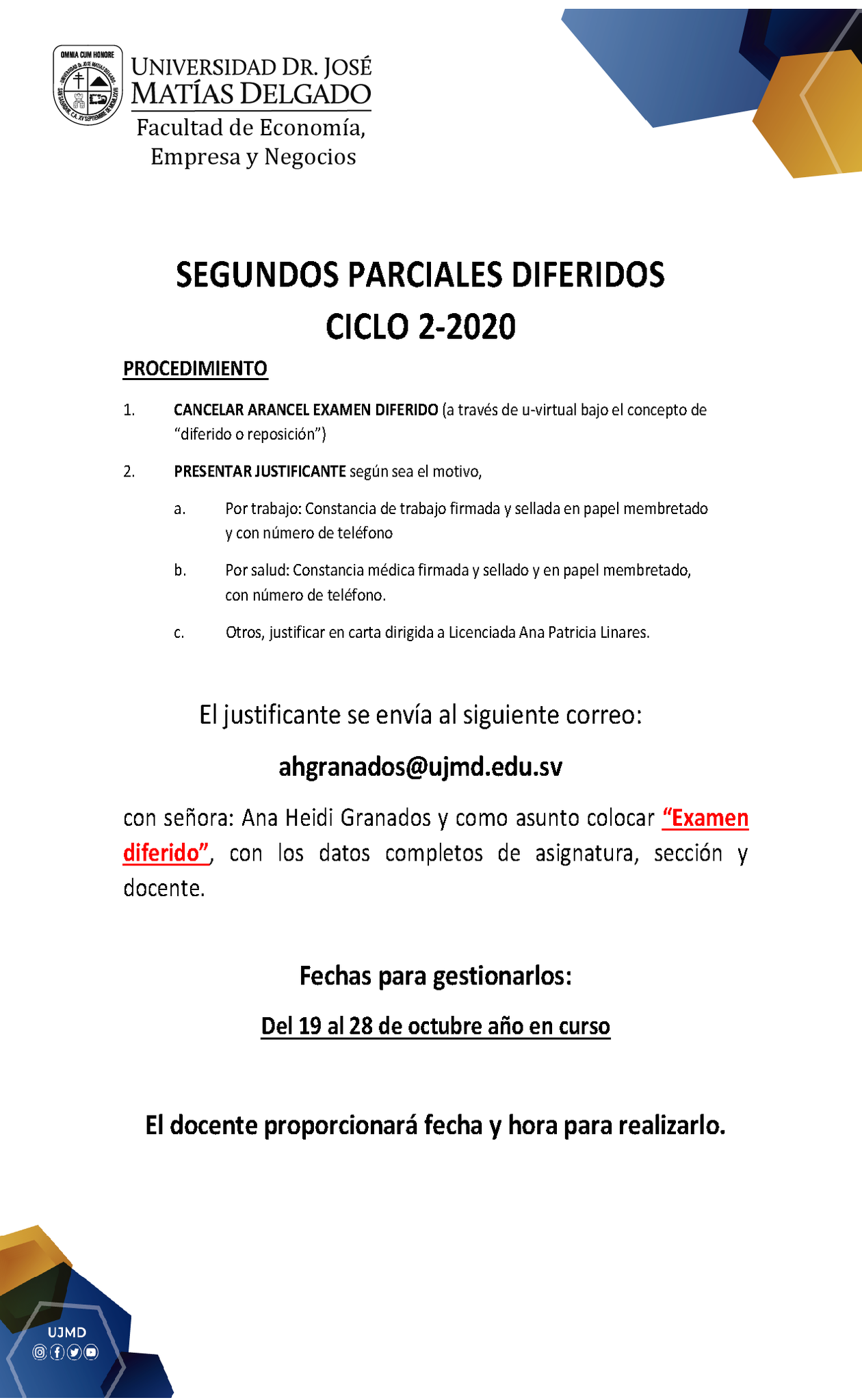 Ujmd Matias Delgado On Twitter Segundos Parciales Diferidos Facultad De Economia Empresa Y Negocios Ujmd